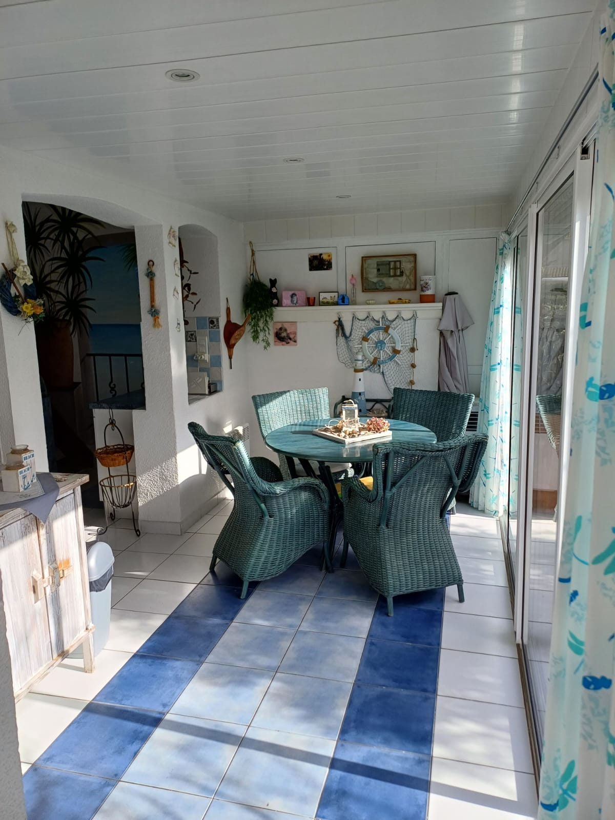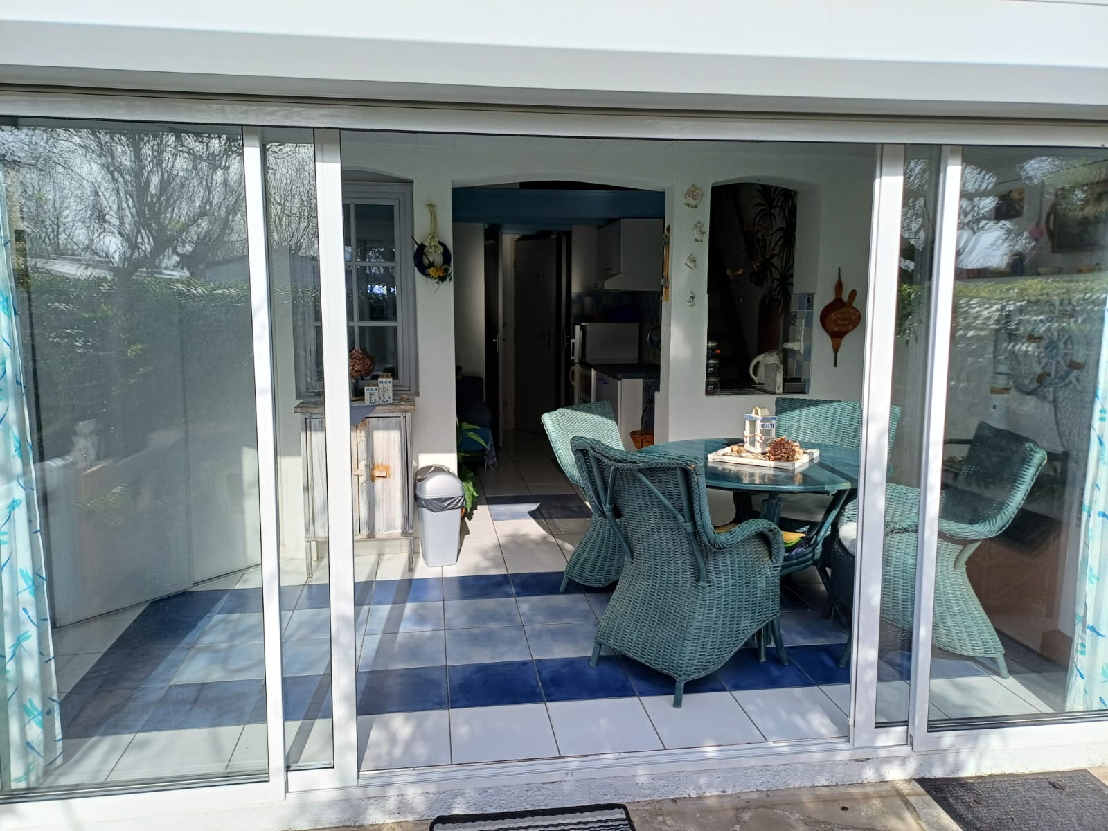 Der Wintergarten verfügt über Schiebetüren, die auf die Terrasse führen, wo Sie die frische Luft und die Sonne genießen können.