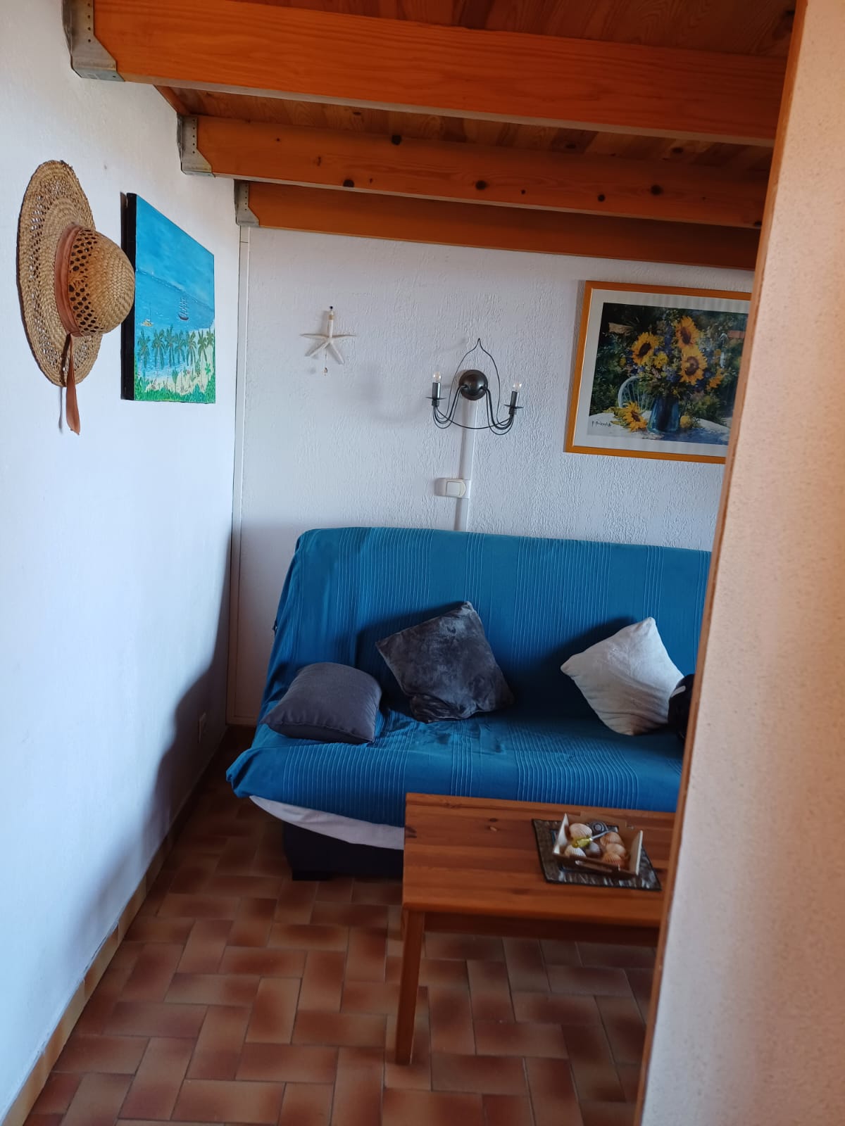 Im oberen Stockwerk befindet sich eine gemütliche Galerie mit zwei Einzelbetten, die als zusätzlicher Schlafraum genutzt werden können.